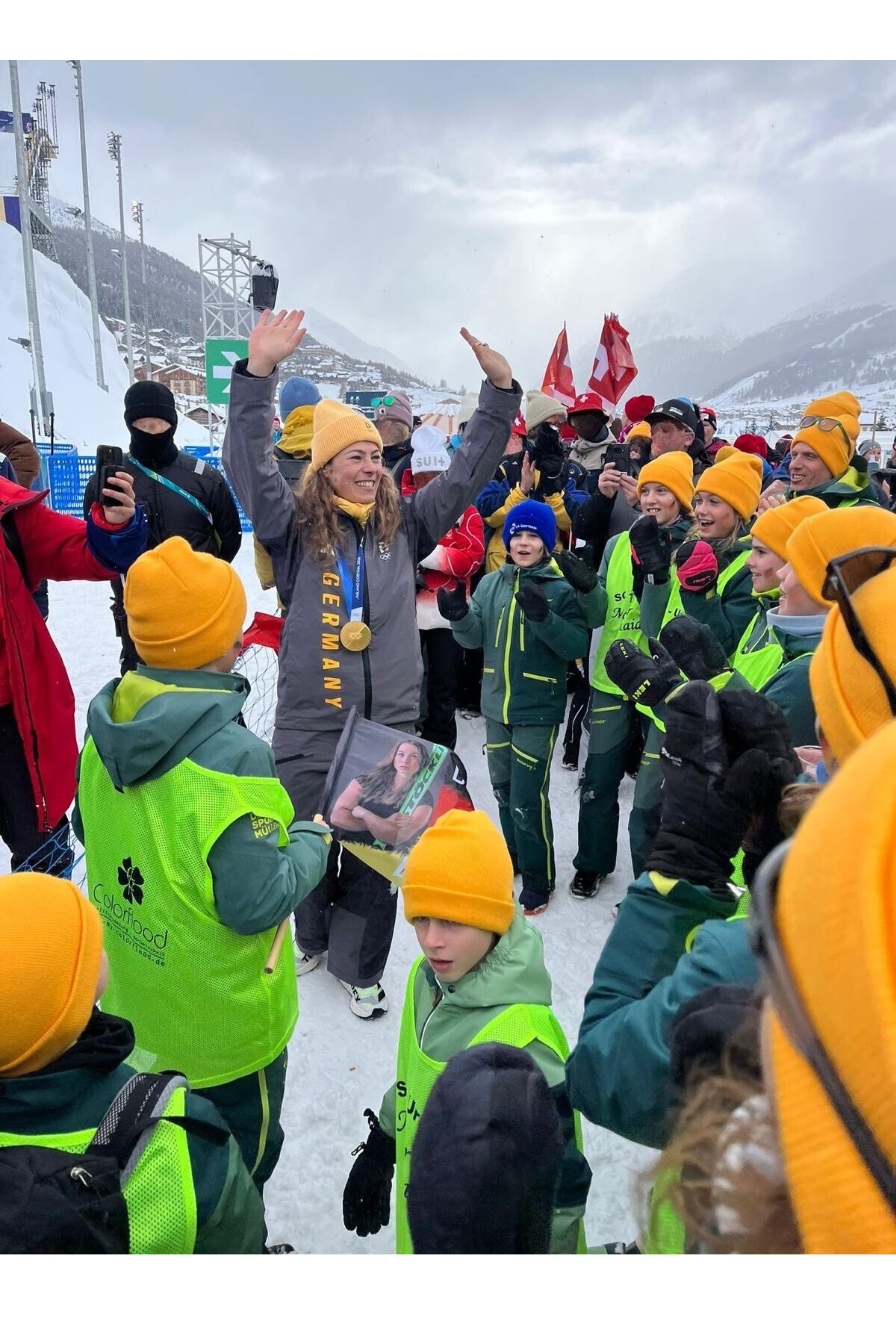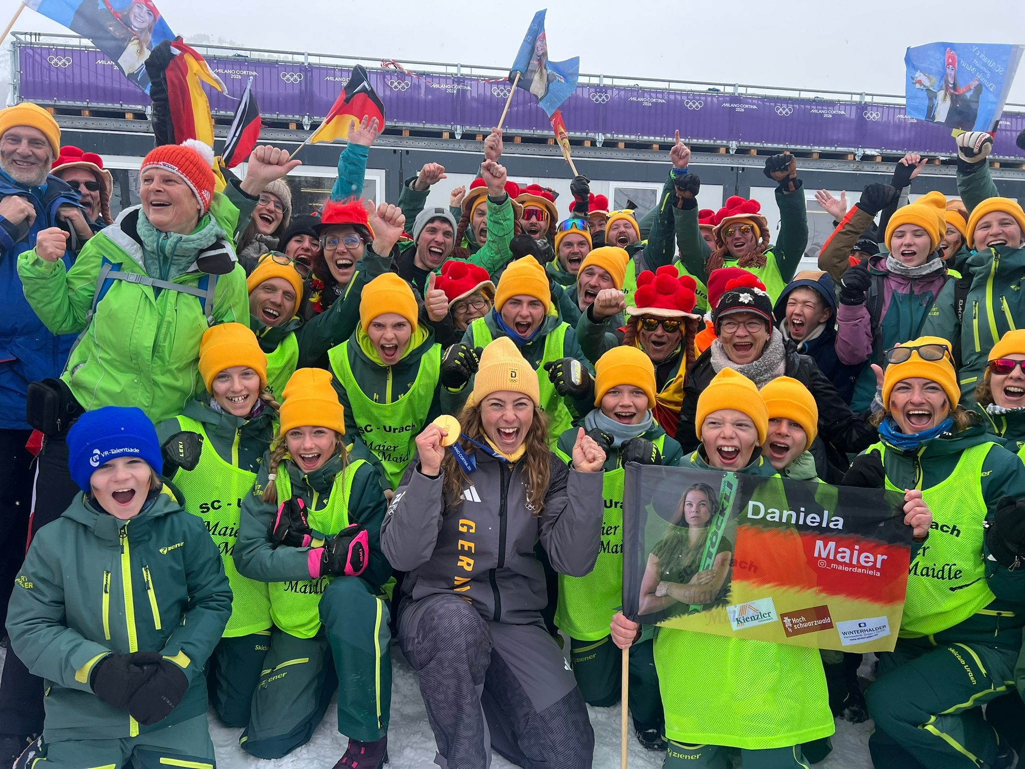 Furtwangen/Vöhrenbach Die Städte Furtwangen und Vöhrenbach sind stolz auf Skikrosserin Daniela Maier. Bei den Olympischen Spielen in Mailand und Cortina d’Ampezzo holte die junge Furtwangerin Gold.„Wir gratulieren Daniela Maier zu diesem großartigen Erfolg. Mit der Goldmedaille hat sie sich einen Platz in den Geschichtsbüchern gesichert“, so Bürgermeister Florian Merz. Die ganze Region sei stolz auf die Sportlerin und man freue sich bereits darauf, Daniela Maier in ihrer Heimat begrüßen zu dürfen.Viele Fans waren am Wettkampftag vor den Bildschirmen und feuerten Daniela Maier an. Außerdem war eine große Abordnung des Skiclub Urach in Livigno vor Ort, um „ihre Dani“ zu unterstützen. Rund 40 Fans hatten sich auf den Weg gemacht. „Das war ein wahnsinniges Erlebnis, das uns allen in Erinnerung bleiben wird“, zeigte sich Manfred Kienzler begeistert. Er ist Ehrenvorsitzender des SC Urach und war mit vor Ort. „Es hat so viel Spaß gemacht, alle haben getanzt und sich gefreut“, so Kienzler. Es sei schön gewesen, so viele Nationen zu treffen und vor allem faszinierte ihn, dass alle Daniela Maier ihren Sieg von Herzen gegönnt hatten.„Eine großartige Leistung und ein absolut verdienter Sieg!“, freut sich Vöhrenbachs Bürgermeister Heiko Wehrle. Gemeinsam mit vielen Fans hatte er mit dem SC Urach beim dortigen Public Viewing mitgefiebert und über die Goldmedaille gejubelt. Seit Kindesbeinen startet die erfolgreiche Sportlerin für den SC Urach und hat sich nun die Krone aufgesetzt.Bereits 2022 war die Freude groß, als Daniela Maier bei den Olympischen Winterspielen in Peking die Bronze- Medaille erreichte. Nun hat sich die Furtwangerin einen Traum verwirklicht und durfte sich in Italien die Goldmedaille umhängen.Gemeinsam mit dem SC Urach planen die Städte Vöhrenbach und Furtwangen bereits einen gebührenden Empfang. Weitere Details hierzu werden noch bekannt gegeben. Bildunterschrift: Umringt von Fans des SC Urach genießt Olympiasiegerin Daniela Maier ihren Erfolg.Foto: SC Urach Bildunterschrift 2: Strahlende Gesichter wohin man blickt. Daniela Maier ist überglücklich über ihre Goldmedaille und teilt diese Freude mit ihren Fans.